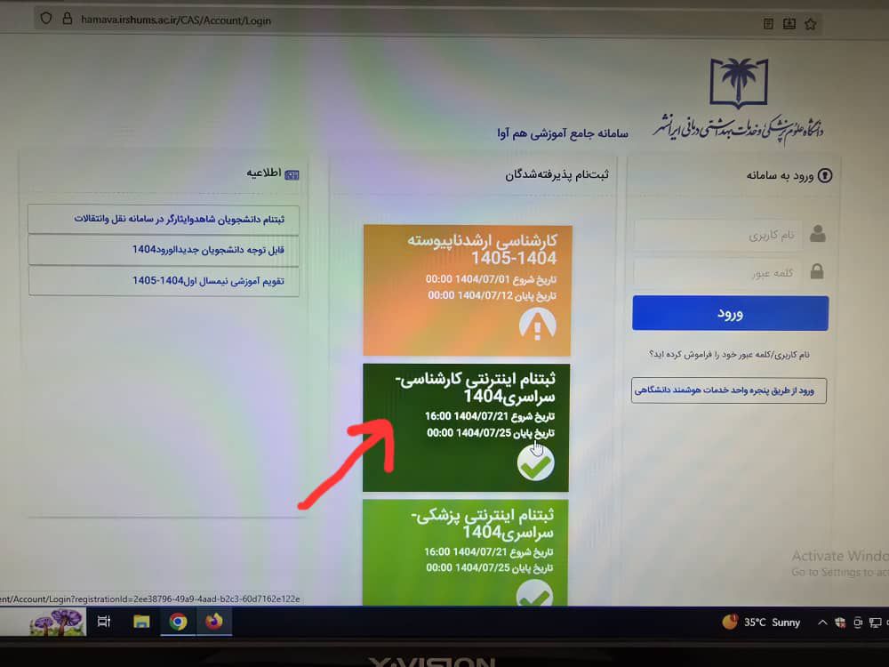 دانشجویان توجه فرمایند رمز عبور و کاربری کد ملی دانشجو می باشد وهمچنین ثبت نامحضوری متعاقبا اعلام میگردد.