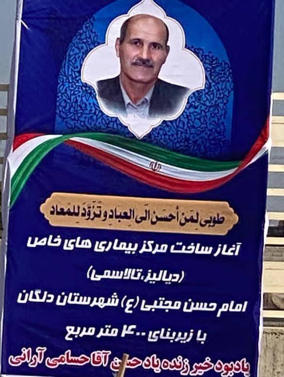کلنگزنی مرکز بیماریهای خاص دلگان به نام زندهیاد حسن آقا حسامی آرانی