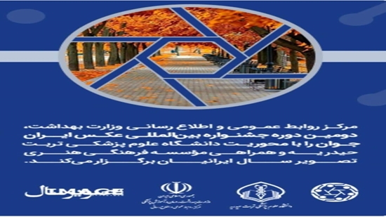 مرکز روابط عمومی و اطلاعرسانی وزارت بهداشت، درمان و آموزش پزشکی با محوریت دانشگاه علوم پزشکی تربتحیدریه و با همکاری مؤسسه فرهنگی هنری تصویر سال ایرانیان، دومین دوره جشنواره بینالمللی عکس ایران جوان را با برگزاری مسابقۀ عکس “تصویر جوان ایرانی” برگزار میکند.